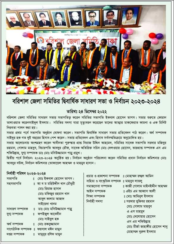 বরিশাল জেলা সমিতির দ্বি-বার্ষিক সাধারণ সভা ও নির্বাচন 2023-24